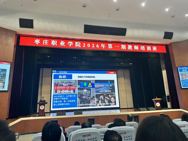 为全面贯彻落实党的二十届四中全会精神,深入推进党建与事业发展“一融双高”,在枣庄职业学院2026年第一期教师培训班中,新能源与汽车工程系教师党支部、学生党支部的三名党员教师作为优秀典型代表登台发言,他们结合自身工作实际,分享育人经验与成长感悟,用实干担当诠释了党员的初心使命,让党徽在培训课堂上熠熠生辉。